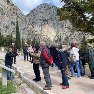 Τα λεωφορεία μας ξεκίνησαν νωρίς το Σάββατο από την Όσσα και τη Θεσσαλονίκη και μετά τις ανάλογες στάσεις -με τα σχετικά κεράσματα που ετοίμασε ο σύλλογος-, κατευθυνθήκαμε προς τον προορισμό μας που ήταν οι ιστορικοί Δελφοί, γνωστοί ως ο «ομφαλός της γης» κατά την αρχαιότητα. Εκεί ξεναγηθήκαμε από 2 εξαιρετικούς διπλωματούχους ξεναγούς στον αρχαιολογικό χώρο των Δελφών, γνωρίζοντας όψεις της ιστορίας της αρχαίας ελληνικής πόλης στην οποία λειτούργησε το σημαντικότερο μαντείο του αρχαιοελληνικού κόσμου. Μετά την ξενάγηση περιηγηθήκαμε στο Μουσείο, με τα εξαιρετικά εκθέματα, μεταξύ των οποίων και το άγαλμα του Ηνίοχου που είναι αναμφίβολα το πιο διάσημο από τα αφιερώματα στους Δελφούς. Η εναλλαγή ήλιου και συννεφιάς, βράχων στα ψηλά και απέραντων ελαιώνων στα χαμηλά, σε συνδυασμό με τα αρχαία οικοδομήματα του χώρου αποτελούν ειδυλλιακές εικόνες του περίφημου Δελφικού τοπίου που μαγεύει κάθε επισκέπτη.
