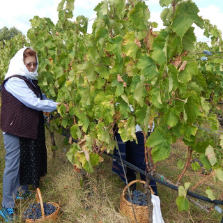 Ο τρύγος είχε ξεκινήσει εδώ και μέρες. Αμέσως μπήκαμε κι εμείς στο χωράφι ξεκινώντας με τραγούδι και ενθουσιασμό το μάζεμα του ξινόμαυρου, της πιο γνωστής ποικιλίας του μακεδονικού αμπελώνα.